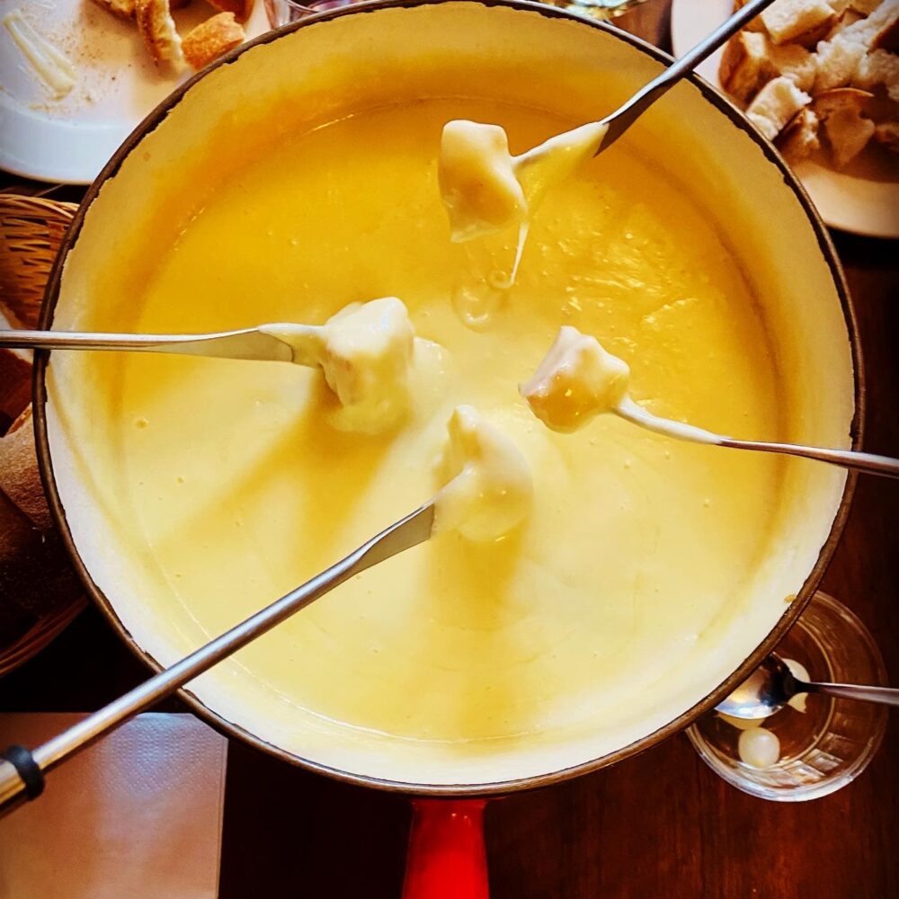 Qu’elle soit moitié-moitié, fribourgeoise, aux bolets ou encore à la tomate, une bonne fondue est un plat convivial par excellence. Il n’y a qu’à voir l’engouement pour la Fondue d’Automne de Lausanne à Table ou pour le Mondial de Fondue de Tartegnin (dont la prochaine édition aura lieu mi-novembre 2023) pour en être convaincu. Et bonne nouvelle, elle peut être concoctée toute l’année à la maison avec les mélanges artisanaux de fromageries comme Macheret Fromage. Le reste du temps et bien au chaud dans leurs salles respectives, le Café du Grütli, le Chalet Hydda éphémère du Vieux Lausanne ou encore l’Auberge du Chalet des Enfants sont notamment réputés pour leurs caquelons.