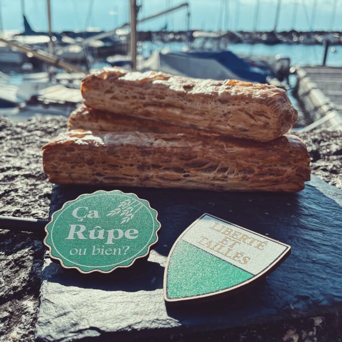 A base de pâte feuilletée garnie de « greubons » (des résidus de la fonte du saindoux avec lesquels la pâte est élaborée), le taillé est souvent rectangulaire et parfois transformé en sandwich avec une garniture. Pour déguster le premier taillé aux greubons labellisé Vaud + et 100% local, rendez-vous les samedis au marché sur le stand de l’enseigne Ça Rupe.