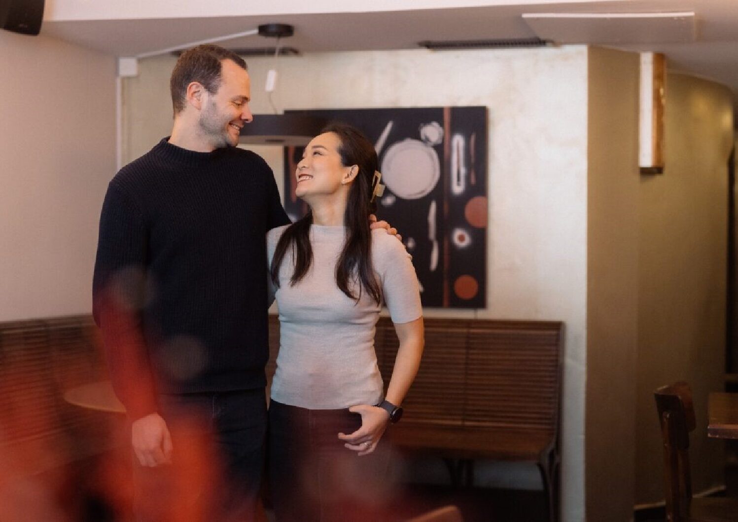 Maza affiche sa cuisine de partage aux inspirations européennes, chinoises et moyen-orientales. Un couple est à la tête du restaurant : Robin Burnier, originaire de Chine, et son mari Julien, égyptien et suisse.