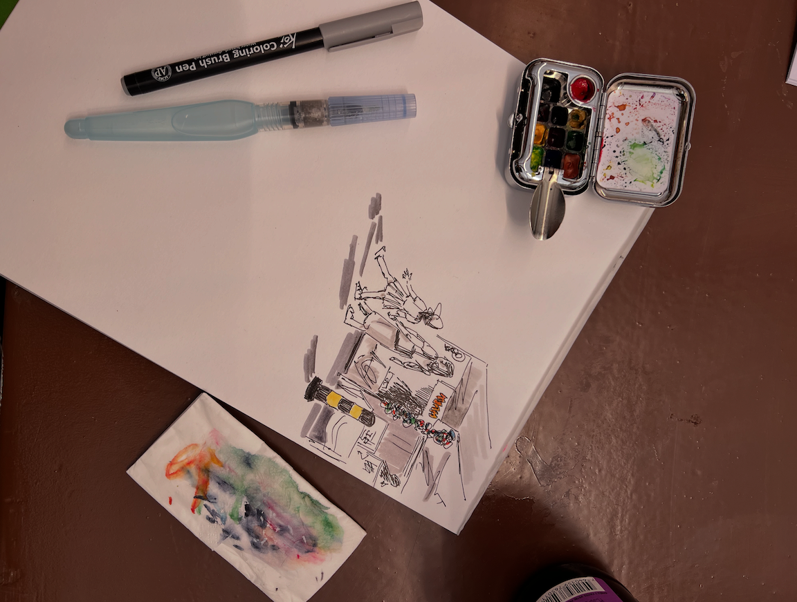 Le principe est simple, une fine équipe qui se réunit pour dessiner l’ambiance, le décor, et les alentours lors d’un apéro partagé