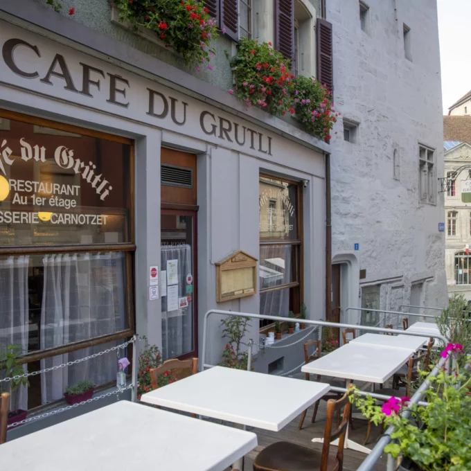 - Café du Grütli : Rue de la Mercerie 4, 1003 Lausanne, Lu-Ve 10h à 14h30 et 18h30 à 23h, Sa 10h à 15h et 18h30 à 23h
